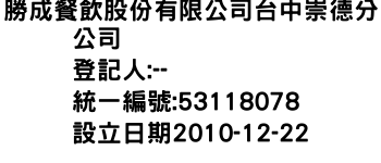 勝成餐飲股份有限公司台中崇德分公司