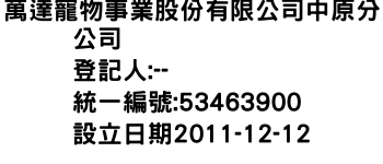 萬達寵物事業股份有限公司中原分公司