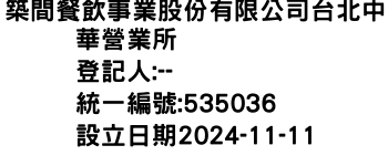 築間餐飲事業股份有限公司台北中華營業所