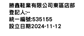 勝鑫鞋業有限公司東區店部-統編:00535155