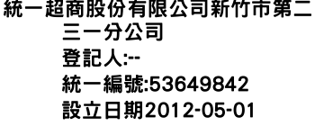 統一超商股份有限公司新竹市第二三一分公司