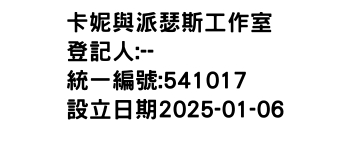 臺北市士林區中山北路7段190巷8之3號1樓卡妮與派瑟斯工作室-統編:00541017
