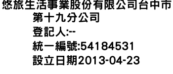 悠旅生活事業股份有限公司台中市第十九分公司