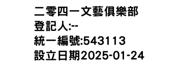 臺中市北屯區平田里文心路4段955號10樓之6二零四一文藝俱樂部-統編:00543113