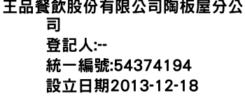 王品餐飲股份有限公司陶板屋分公司