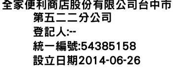 全家便利商店股份有限公司台中市第五二二分公司
