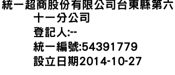 統一超商股份有限公司台東縣第六十一分公司