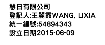 登記人:王麗霞WANG, LIXIA