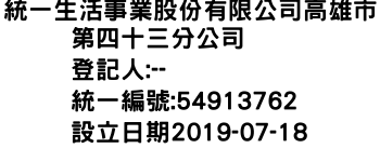 統一生活事業股份有限公司高雄市第四十三分公司