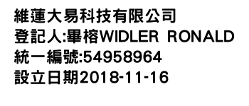 登記人:畢榕WIDLER RONALD