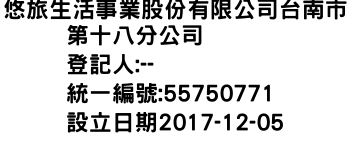 悠旅生活事業股份有限公司台南市第十八分公司