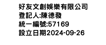 臺北市信義區基隆路一段155號14樓之3好友文創娛樂有限公司-統編:00057169