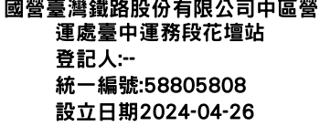 宜蘭縣大同鄉寒溪村寒溪巷30號一樓國營臺灣鐵路股份有限公司中區營運處臺中運務段花壇站-統編:58805808