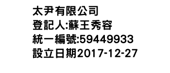 屏東縣九如鄉東寧村東寧路65號一樓太尹有限公司-統編:59449933