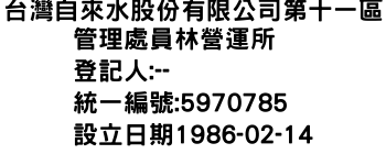 臺中市南區永和街157巷6號1樓台灣自來水股份有限公司屏東區管理處-統編:88797100