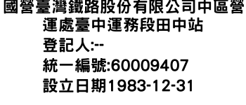 彰化縣大村鄉過溝村福進路100號國營臺灣鐵路股份有限公司中區營運處臺中運務段車埕站-統編:80048142
