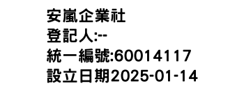 安嵐企業社-統編:60014117
