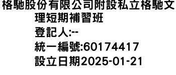 桃園市蘆竹區內溪路9號格馳股份有限公司附設私立格馳文理短期補習班-統編:60174417