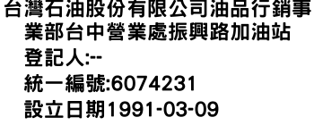 台灣石油股份有限公司油品行銷事業部台中營業處振興路加油站