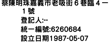 蔡陳明珠嘉義市老吸街6巷臨4一1號
