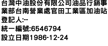 台灣中油股份有限公司油品行銷事業部台南營業處官田工業區加油站