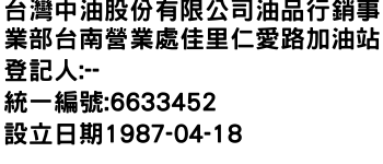 台灣中油股份有限公司油品行銷事業部台南營業處佳里仁愛路加油站