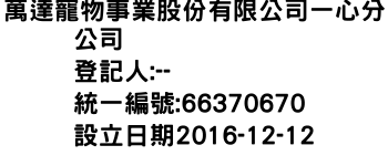 萬達寵物事業股份有限公司一心分公司