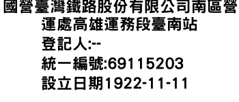 國營臺灣鐵路股份有限公司南區營運處高雄運務段臺南站