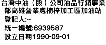 桃園市桃園區龍安里002鄰大興西路三段790號台灣中油股份有限公司油品行銷事業部高雄營業處楠梓交流道加油站-統編:82708313
