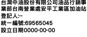 台灣中油股份有限公司油品行銷事業部台南營業處安平工業區加油站