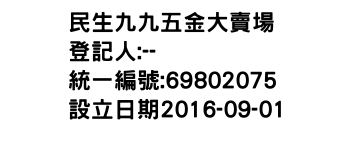 統一編號:69802075