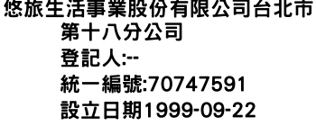 悠旅生活事業股份有限公司台北市第十八分公司