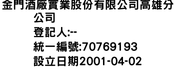 金門酒廠實業股份有限公司高雄分公司