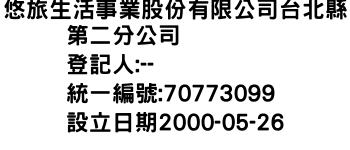 悠旅生活事業股份有限公司台北縣第二分公司