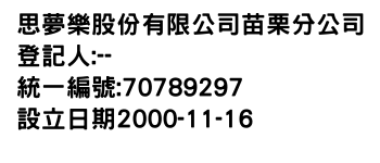 思夢樂股份有限公司苗栗分公司