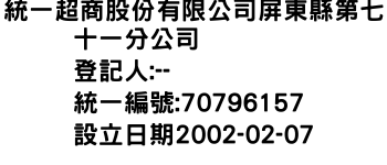 統一超商股份有限公司屏東縣第七十一分公司