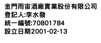金門雨宙酒廠實業股份有限公司