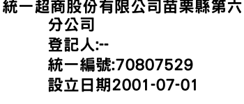 統一超商股份有限公司苗栗縣第六分公司
