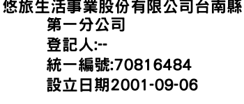 悠旅生活事業股份有限公司台南縣第一分公司