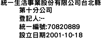統一生活事業股份有限公司台北縣第十分公司