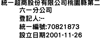 統一超商股份有限公司桃園縣第二六一分公司