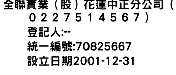 全聯實業(股)花蓮中正分公司(0227514567)