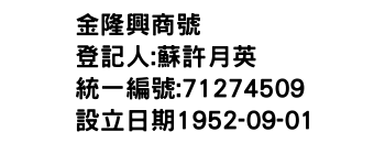 統一編號:71274509