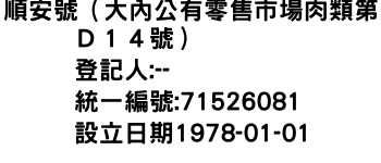 順安號(大內公有零售市場肉類第D14號)
