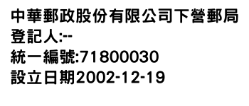 統一編號:71800030