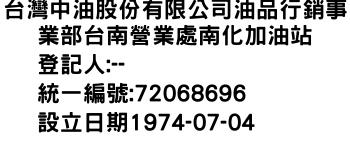 台灣中油股份有限公司油品行銷事業部台南營業處南化加油站