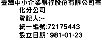 臺灣中小企業銀行股份有限公司善化分公司