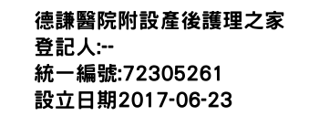 臺南市東 區中西里長榮路2段70號1-4樓德謙醫院附設產後護理之家-統編:72305261