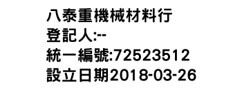 宜蘭縣冬山鄉群英村008鄰冬山路三段516號1樓八泰重機械材料行-統編:72523512