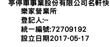 俥亭停車事業股份有限公司名軒快樂家營業所